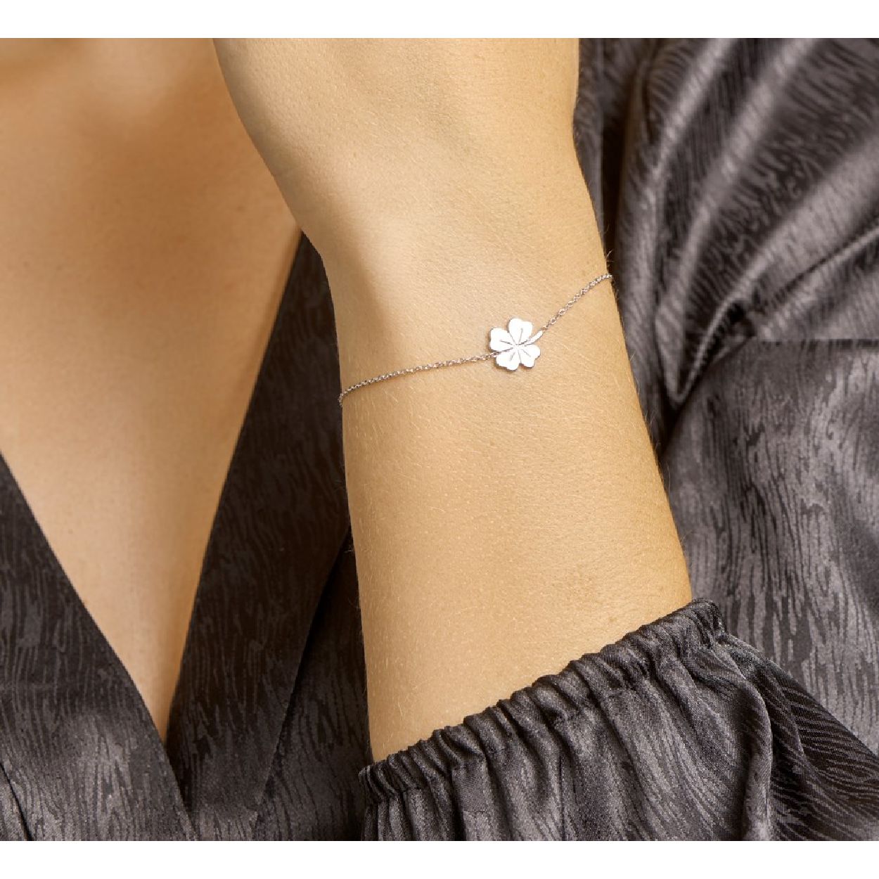 De armband is gemaakt van gerhodineerd zilver en is zilverkleurig. Het is een sieraad voor dames.