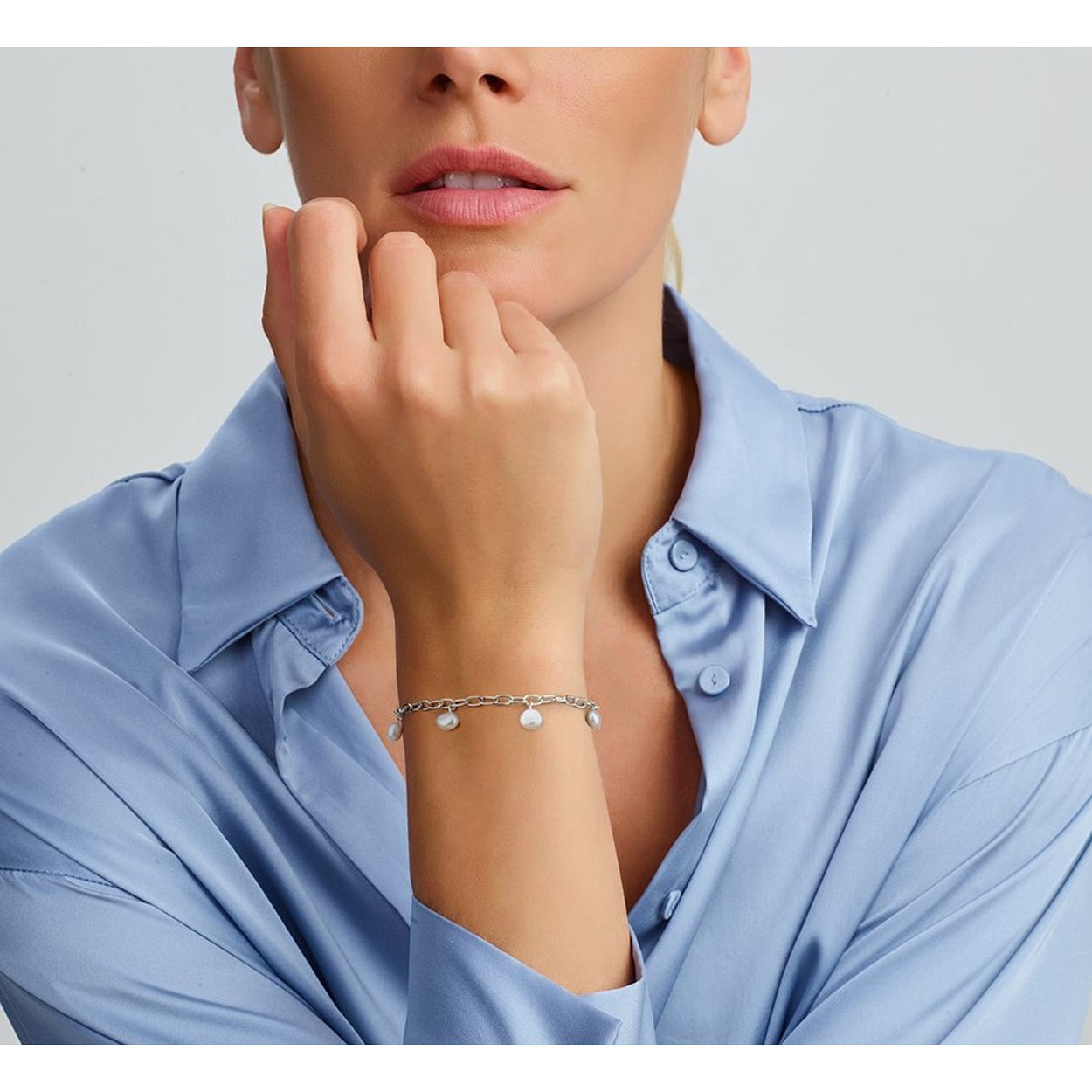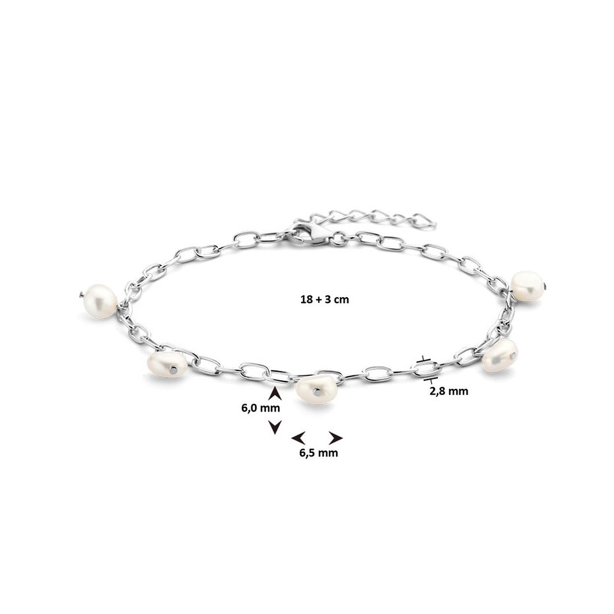 Gerhodineerd 925 zilveren armband uitgevoerd met zoetwaterparels. De armband heeft een draaglengte van 18cm met een extensie van 3cm en een stevige karabijn sluiting.