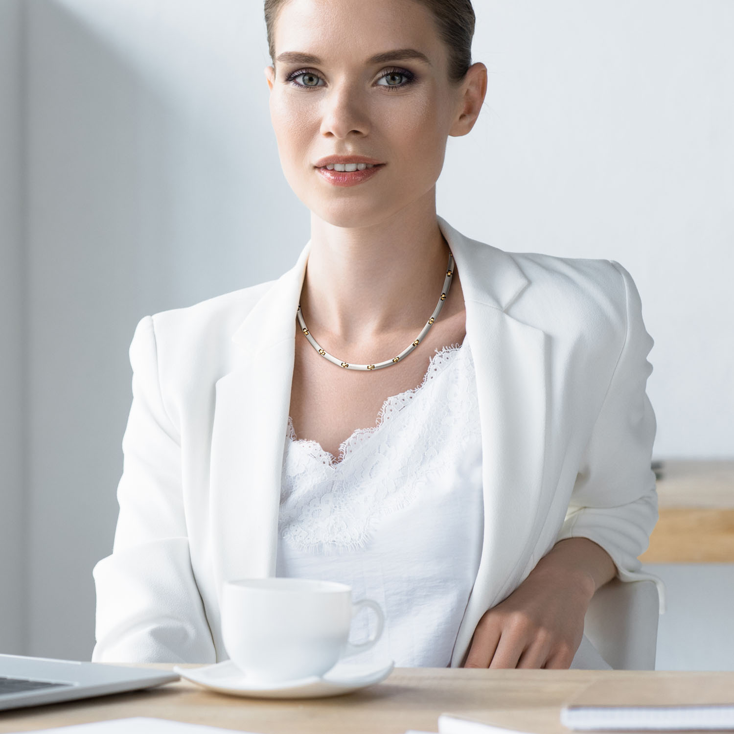 Deze unieke titanium ketting van Boccia Titanium is een mooie toevoeging aan je sieradencollectie! Wat deze mat/glanzende titanium bicolor ketting uniek maakt, is dat hij grote rechthoekige matte schakels heeft met daartussen vierkante glanzende goudkleurige schakels, dit geeft een volle en luxe uitstraling. De ketting heeft een lengte van 50cm en sluit met een klapsluiting. Combineer de ketting met de bijpassende armband en oorbellen voor een complete look.