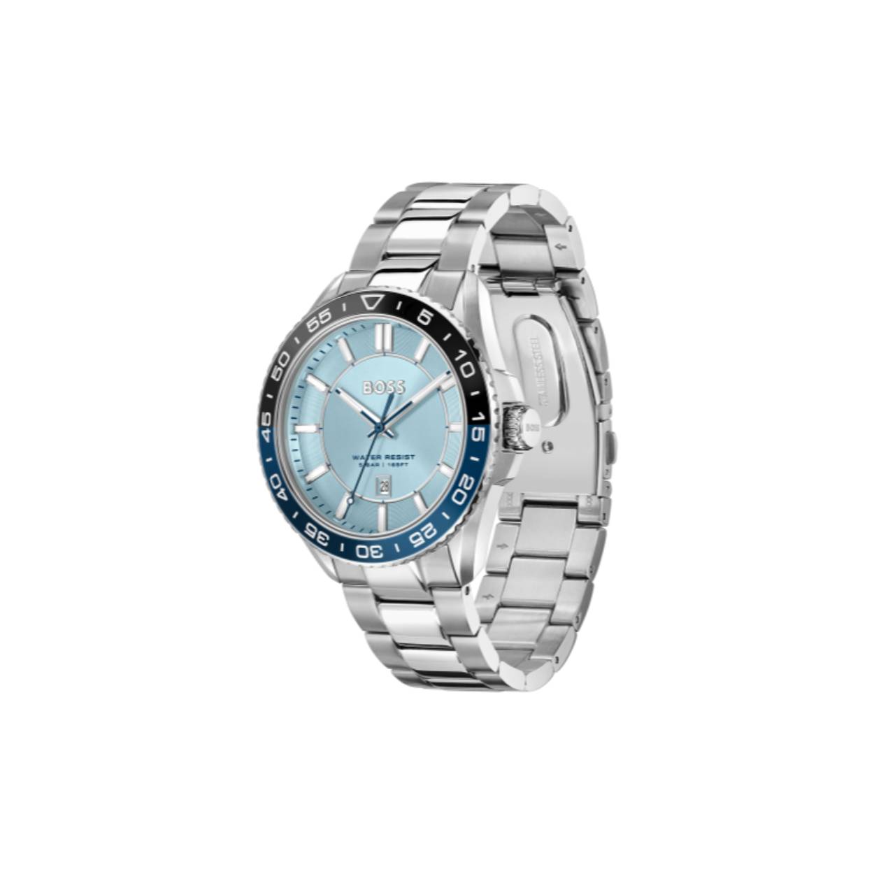 Dit BOSS horloge uit de RUNNER 3H serie met artikelnr: HB1514207 heeft een stoere sportieve uitstraling. Zeer geschikt voor de moderne stijlvolle man van nu. Het herenhorloge valt op door zijn stalen horlogekast met een gekleurde bedrukte bezel en een lichtblauwe sunray wijzerplaat met een datum. Opvallend zijn de wijzers en uurstrepen die met lumibrite zijn ingelegd. Aan de kast zit een stalen mat glanzende schakelband met een vouwsluiting. Het horloge heeft een doorsnee van 43mm met een mineraalglas en is 5ATM.
