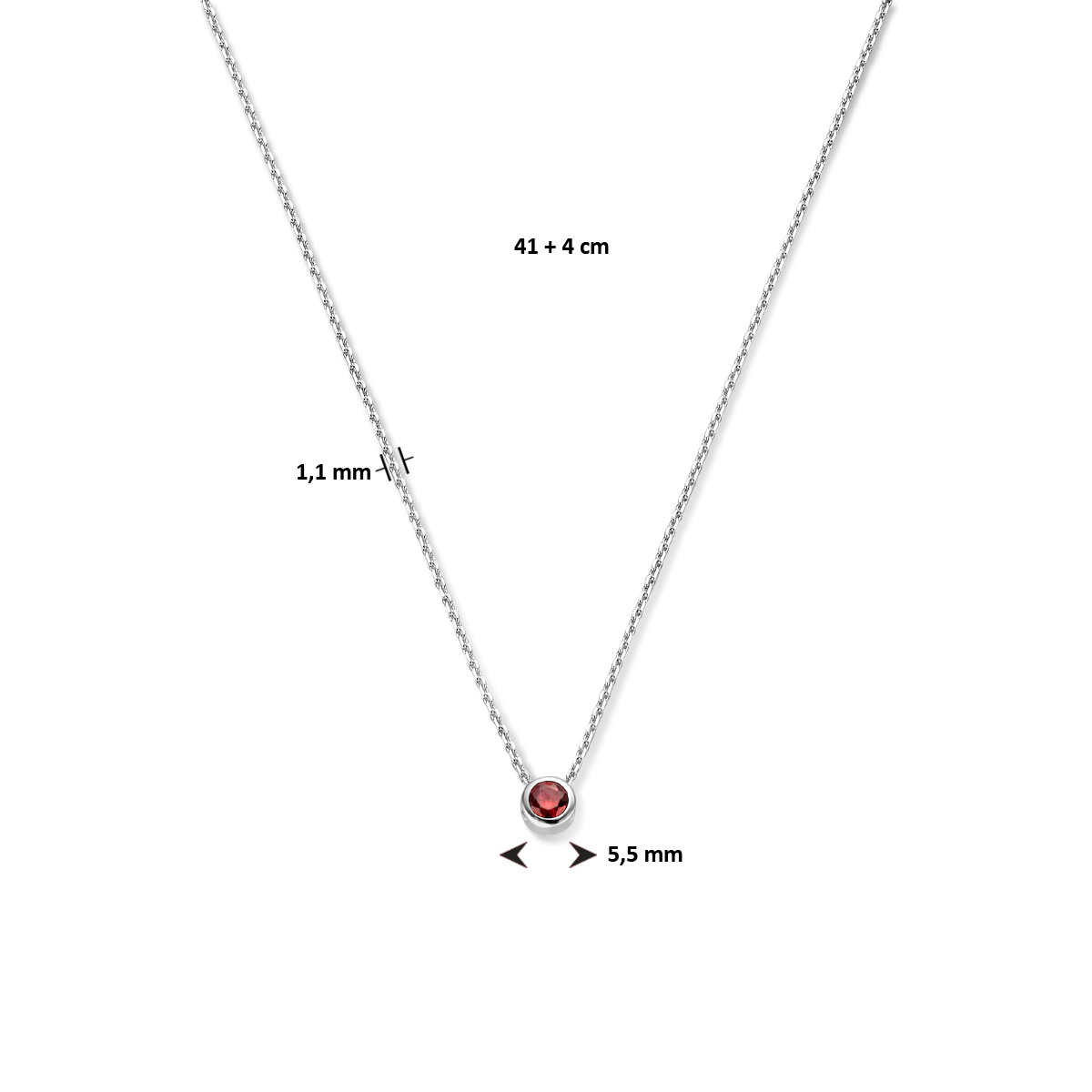 Gerhodineerd 925 zilveren collier uitgevoerd met schitterende zirkonia en een karabijn sluiting. Het collier heeft een draaglengte van 41cm met 4cm extensie. De schakelbreedte is 1.1mm.