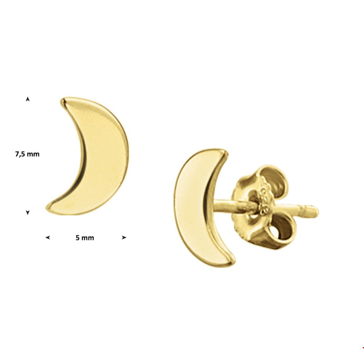 Beschrijving: Trendy geelgoud op ziveren maan oorknoppen. De oorknoppen hebben een afmeting van 7.5x5mm. De oorknoppen zijn gemakkelijk te combineren met andere sieraden uit onze collectie of vanuit je eigen sieraden stash. Tip: Leuk om te geven.