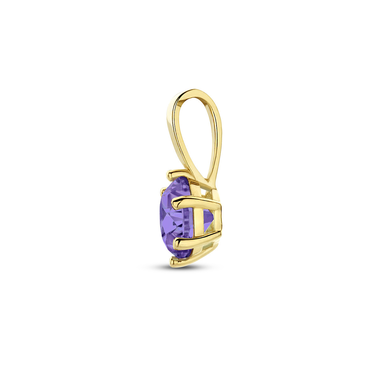 14k Geelgouden geboortesteen hanger uitgevoerd met een schitterende zirkonia amethyst. De hanger heeft een afmeting van 9x4.5mm.