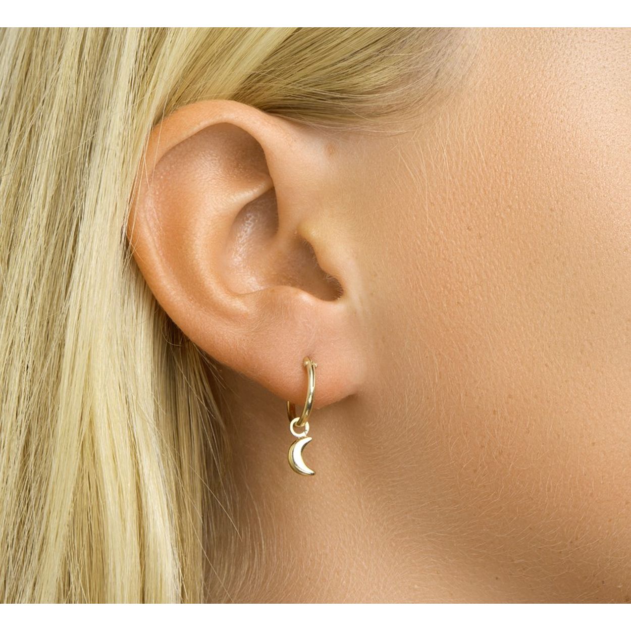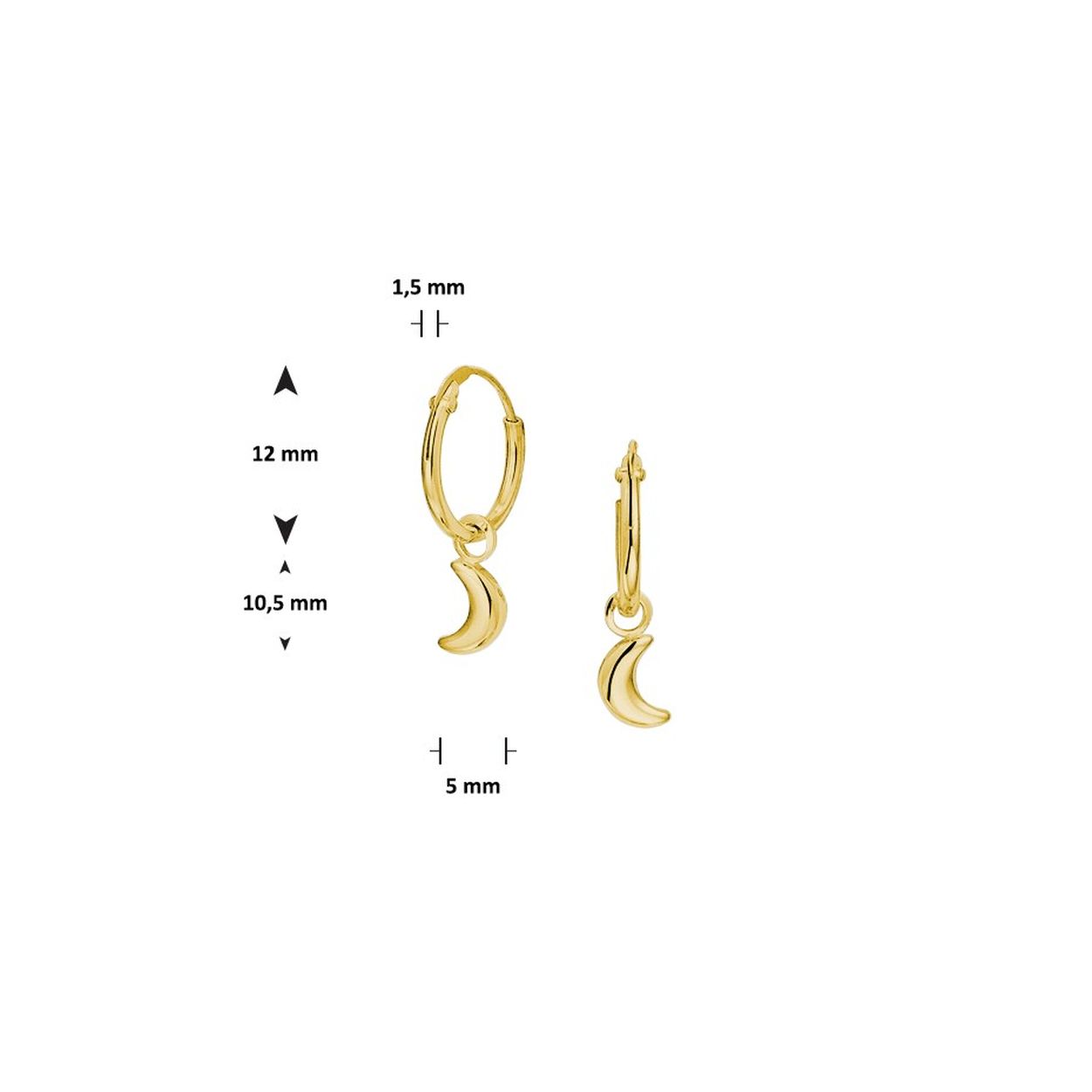 Zilveren oorringen verguld met 'maan' hanger - Hoogte: 10.5
