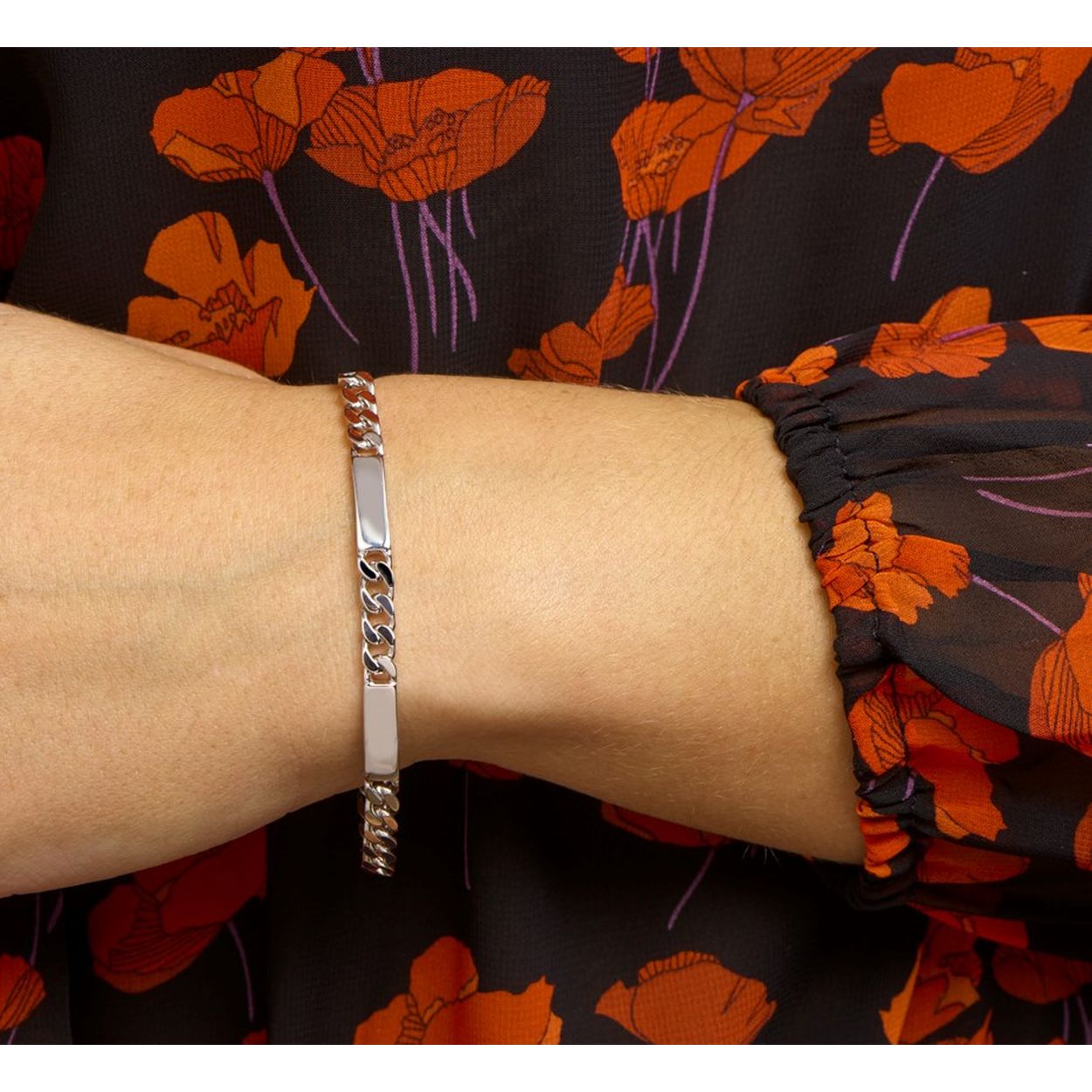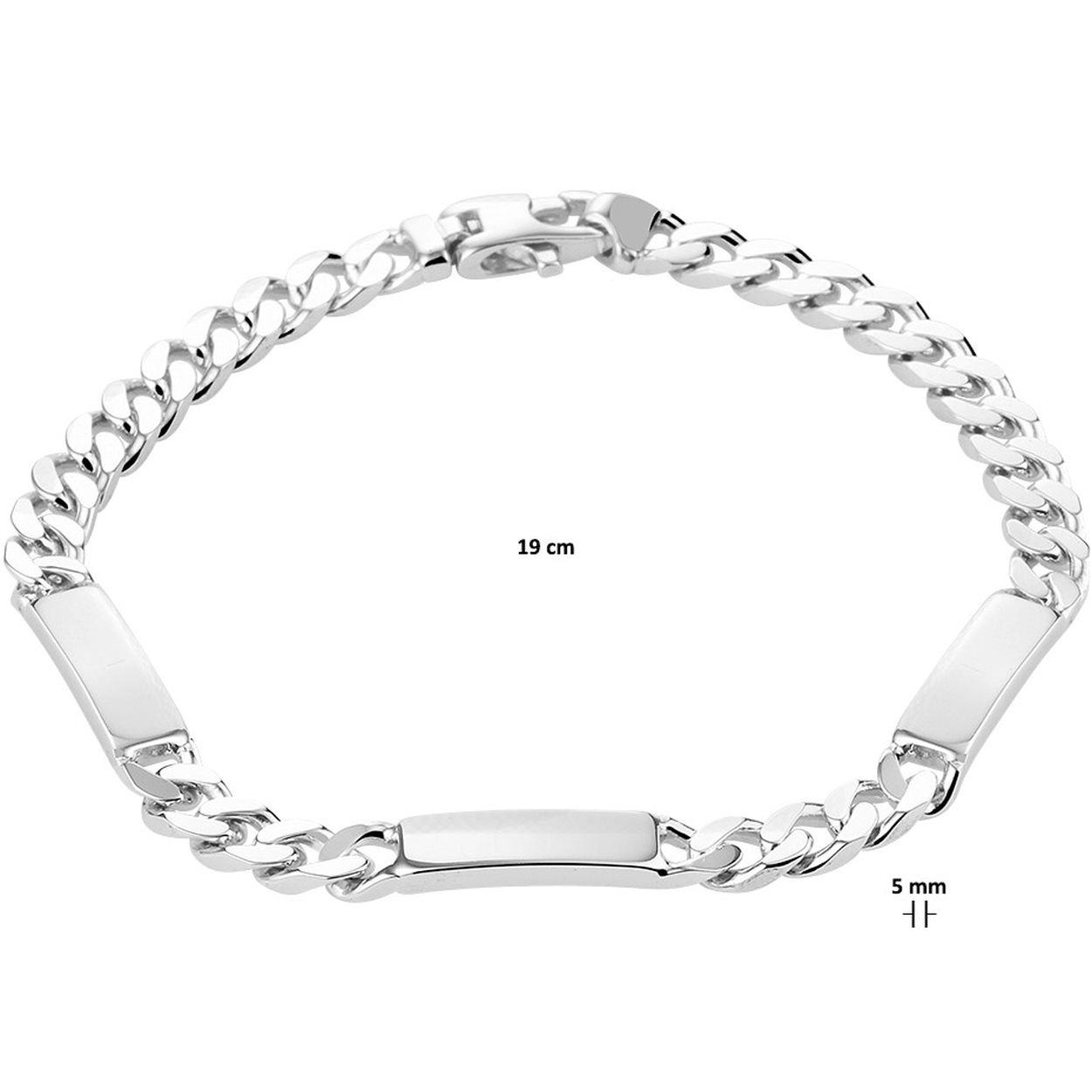 Gerhodineerd 925 zilveren graveerarmband met een breedte van 5mm en een stevige karabijn sluiting. De armband heeft een draaglengte van 19cm.