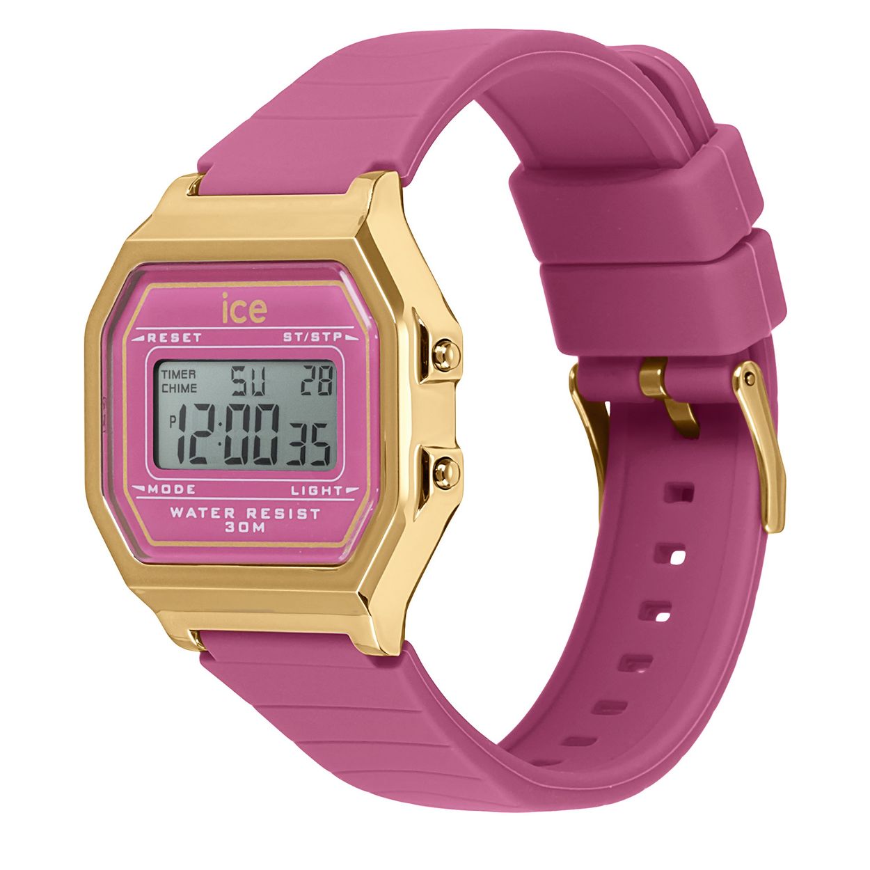 Dit is een horloge van het merk Ice-Watch uit de serie ICE digit retro. Met een horlogekast gemaakt van kunststof en een roze band van siliconen.