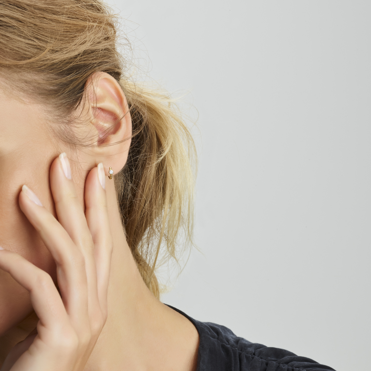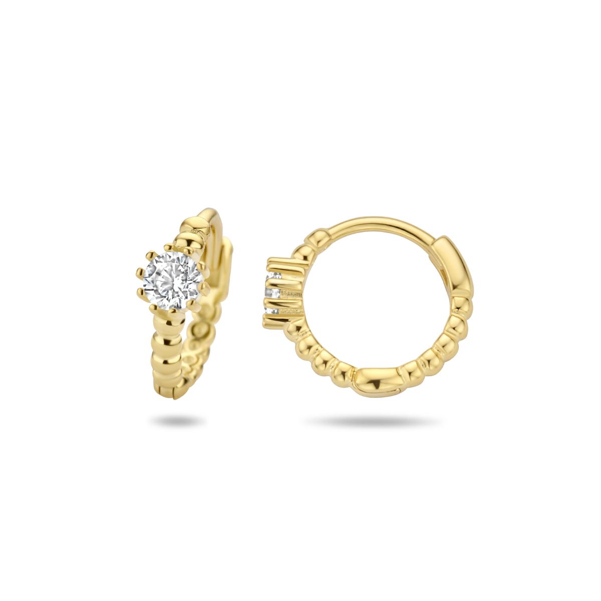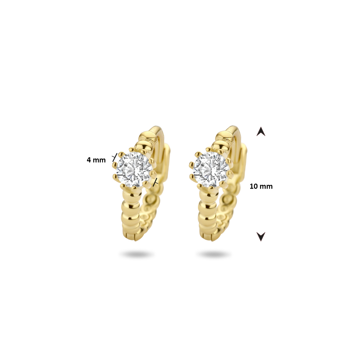 Verguld op 925 zilveren klapoorringen uitgevoerd met bolletjes en schitterende zirkonia. De oorringen hebben een afmeting van 10x4mm. Geen garantie op plating.