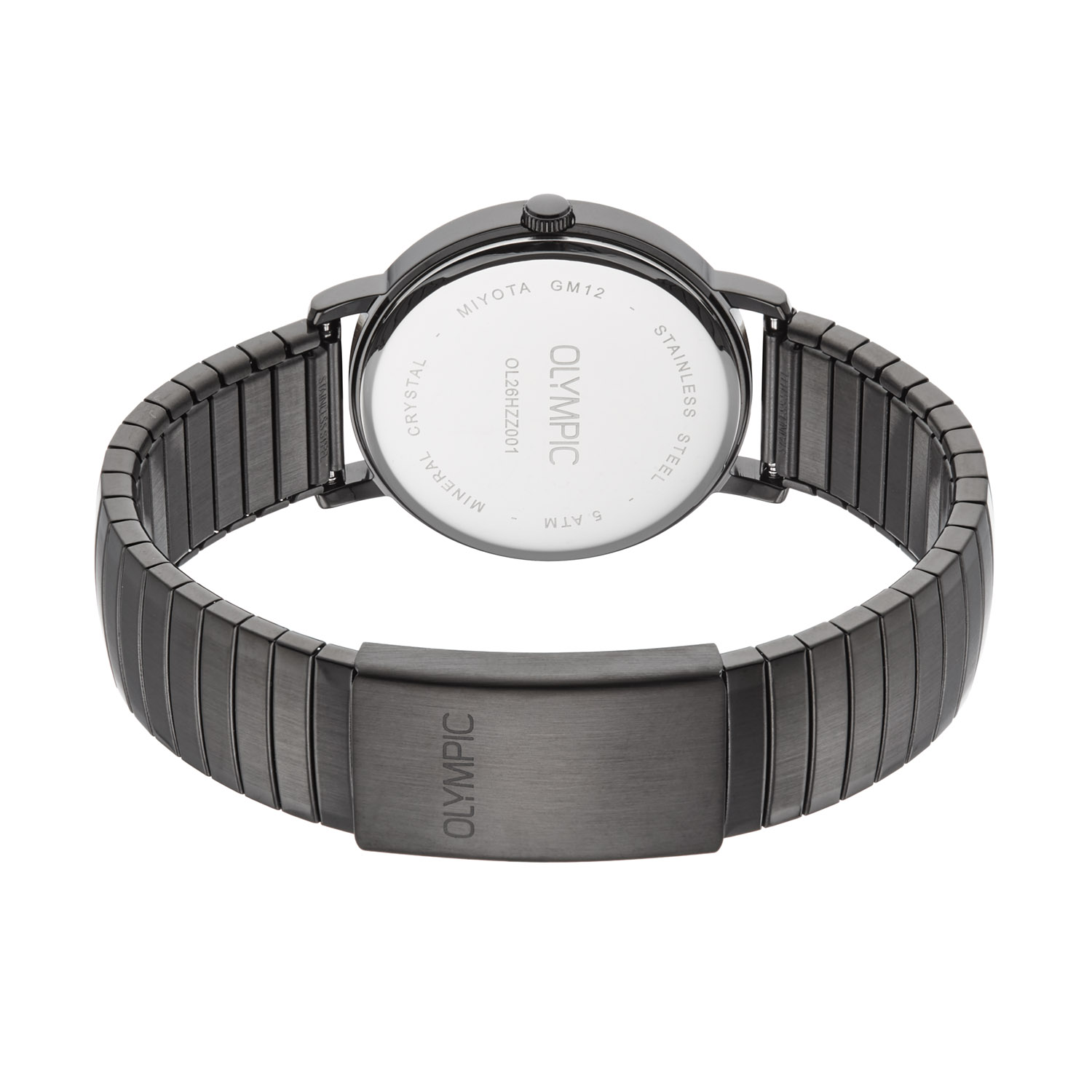 Dit unieke Olympic horloge met artikelnummer: OL26HZZ001 is een herenhorloge met een classic sportieve uitstraling. Het horloge heeft een ronde stalen zwarte kast met een zwarte wijzerplaat met een datum en lumibrite op de wijzers. Aan de kast zit een stalen mat glanzende zwarte rekband. Het horloge heeft een mineraalglas, een doorsnee van 37mm en is 5ATM.