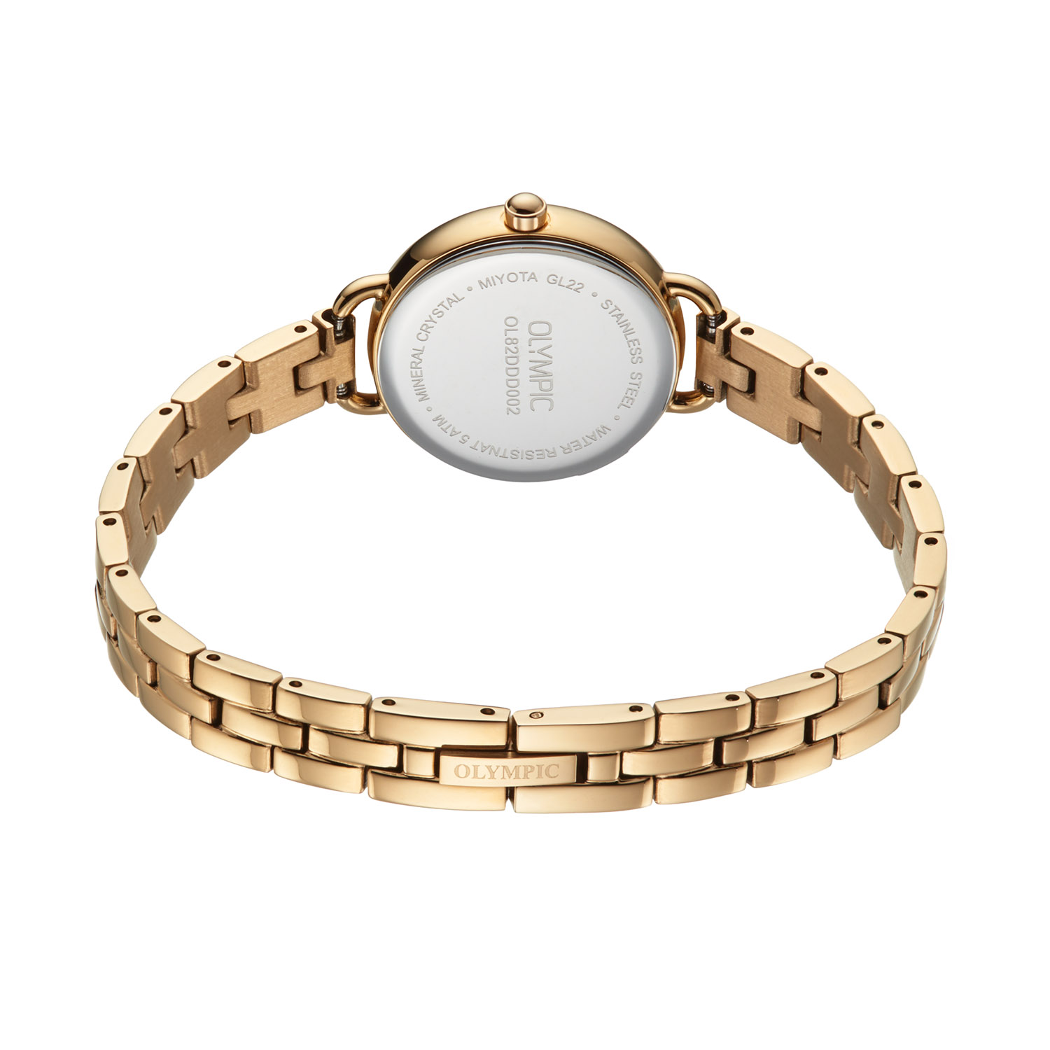 Dit unieke Olympic horloge met artikelnummer: OL82DDD002 is een dameshorloge met een chique uitstraling. Het horloge heeft een ronde goudkleurige stalen kast met een goudkleurige sunray wijzerplaat met fijne streepjes. Aan de kast zit een stalen fijne goudkleurige schakelband met druksluiting. Het horloge heeft een mineraalglas, een doorsnee van 26mm en is 3ATM.