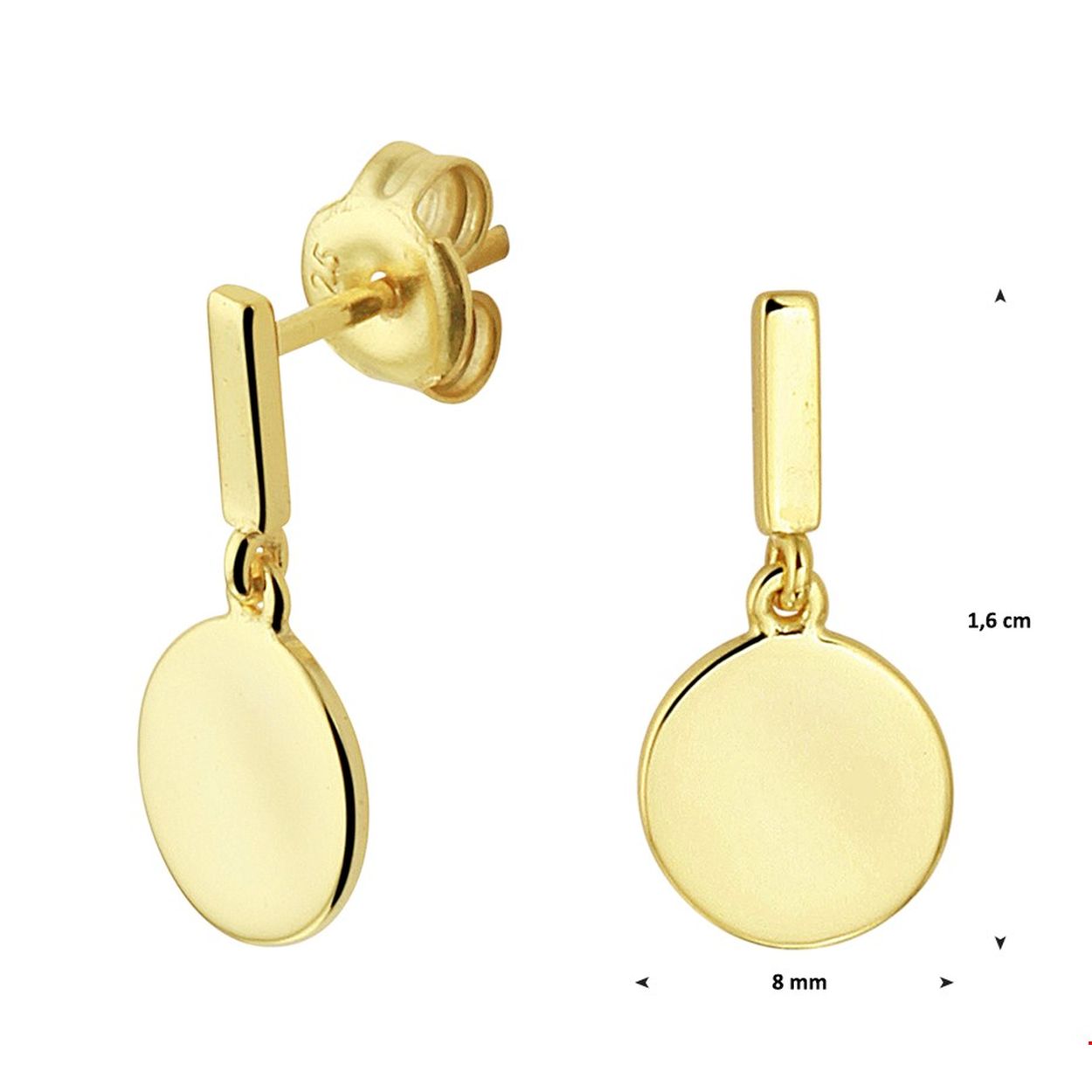 Beschrijving: Trendy geelgoud op zilveren oorhangers met een balkje en een rondje. De oorhangers hebben een hoogte van 1,6cm. Tip: Leuk om kado te geven! Zie je ze al stralen?