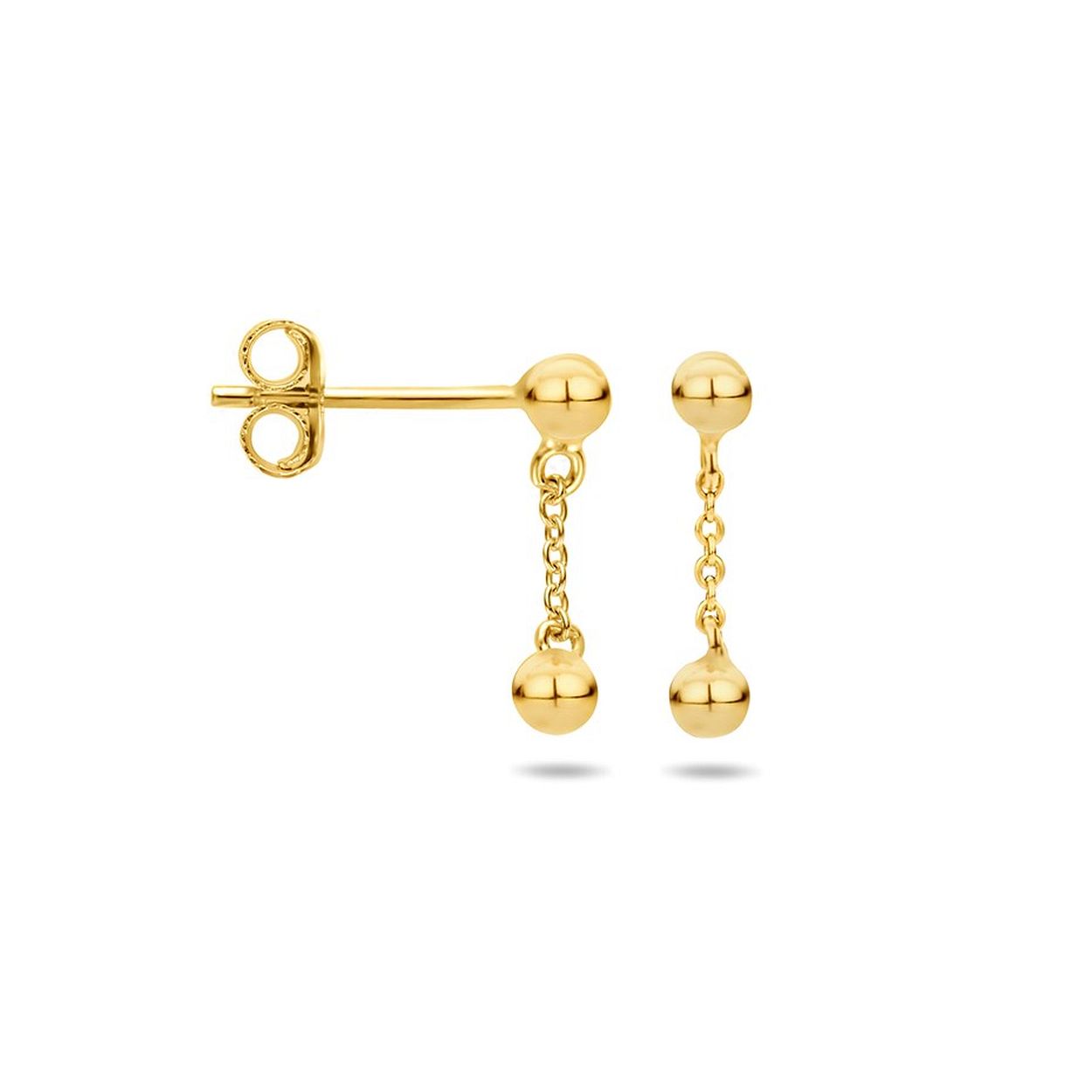 Geelgoud op 925 zilveren oorhangers uitgevoerd met een bolletje. De oorhangers hebben een hoogte van 1.5cm en een breedte van 3cm.