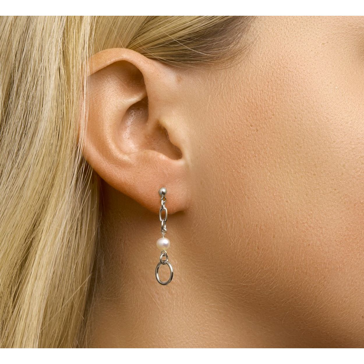 Gerhodineerd 925 zilveren oorhangers uitgevoerd met een zoetwaterparel. De oorhangers hebben een totale hoogte van 3.1cm en een breedte van 8.2mm.