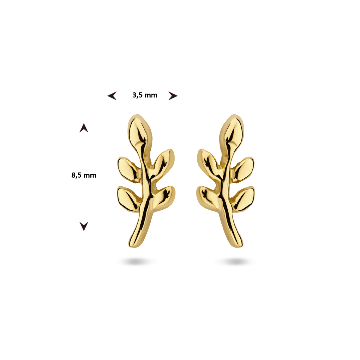 Verguld op 925 zilveren oorknoppen in de vorm van een blad. De oorknoppen hebben een afmeting van 8.5x3.5mm. Geen garantie op plating.