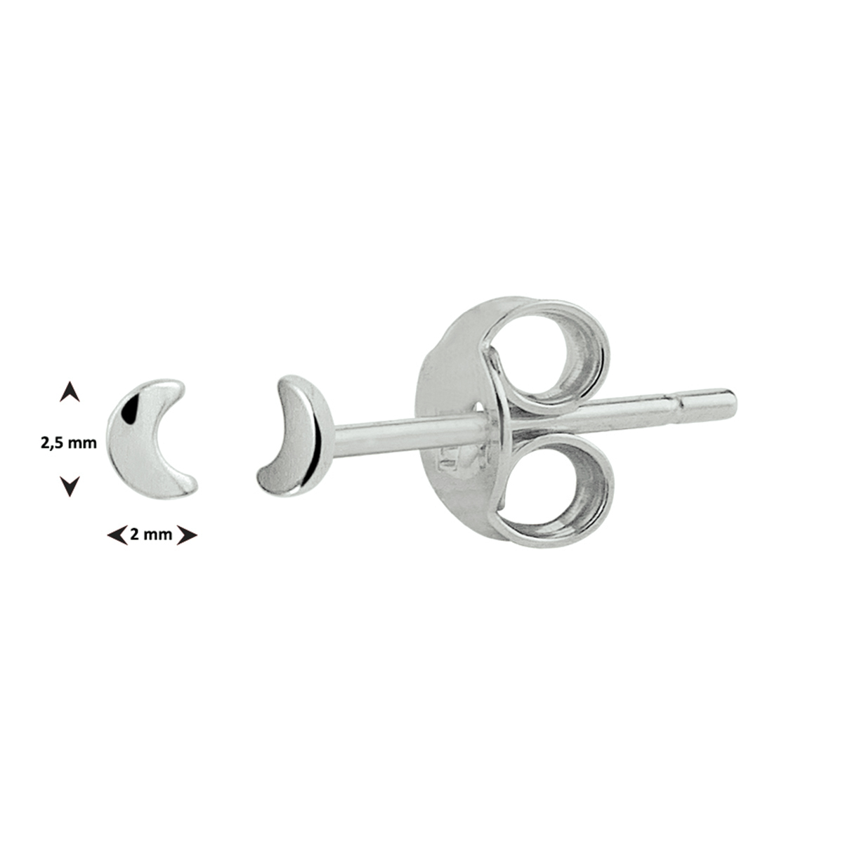 Deze trendy gerhodineerd zilveren mini maan oorknoppen hebben een afmeting van 2.5x2mm. Door de eenvoud kunnen deze oorknoppen perfect worden gedragen met andere sieraden. Laat jezelf stralen met deze blinkende maan oorknoppen! Info: Gerhodineerd zilver is door de rhodiumlaag beter bestand tegen verkleuren en krassen.
