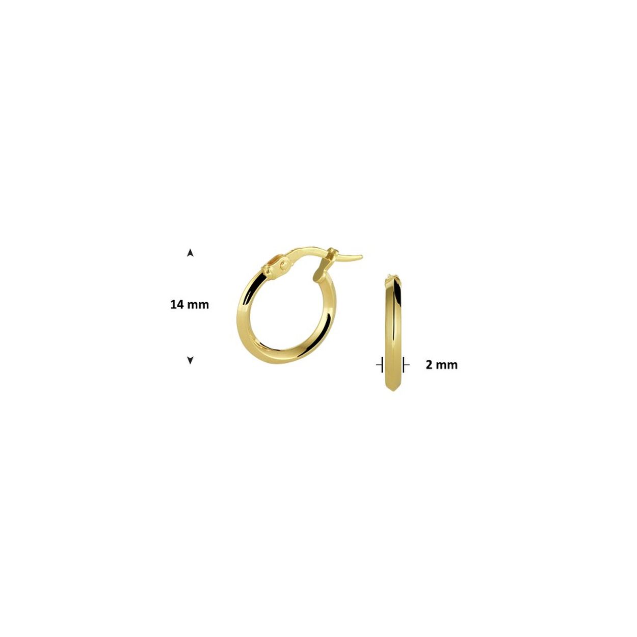 14k Geelgouden oorringen met daarin een kern van 925 zilver. De oorringen hebben een afmeting van 14x2mm.