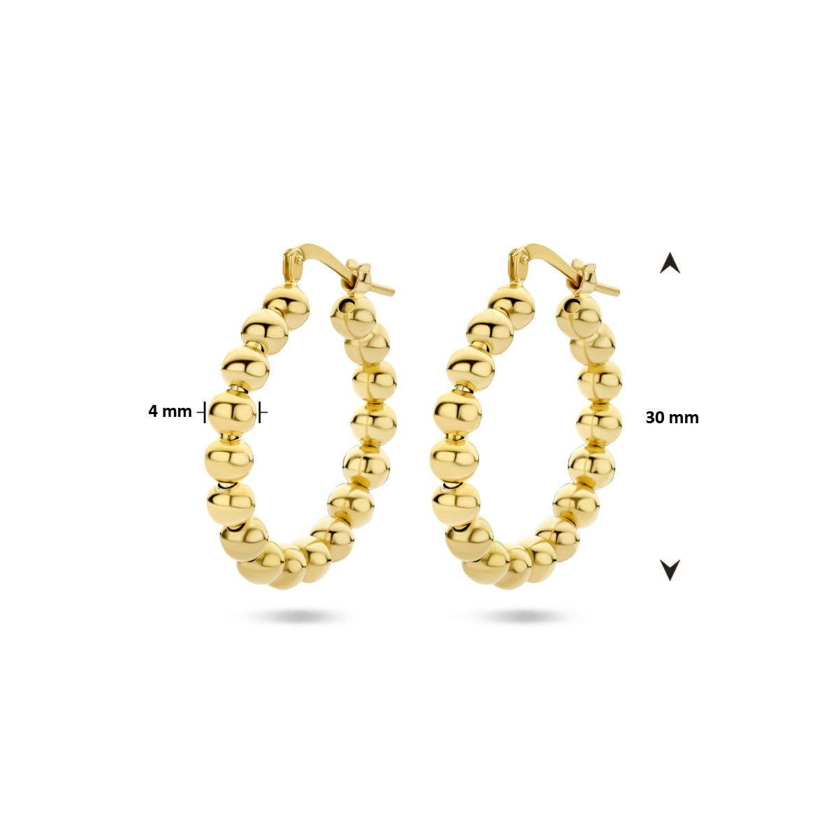 Geelgoud op 925 zilveren oorringen uitgevoerd met bolletjes van 4mm. Geen garantie op plating.
