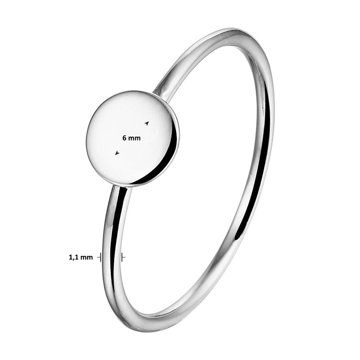 Gerhodineerd zilveren ring uitgevoerd met een poli afgewerkt rondje. De ring heeft een breedte van 6mm.