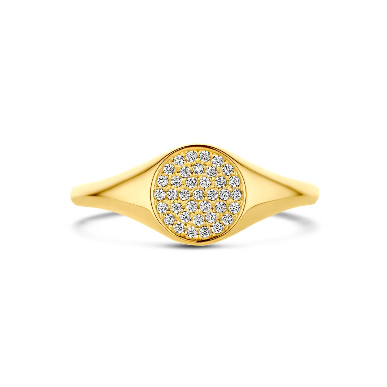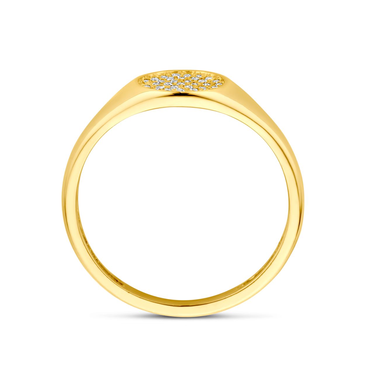 14k Geelgouden ring uitgevoerd met zirkonia. De ring heeft een breedte van 8mm.