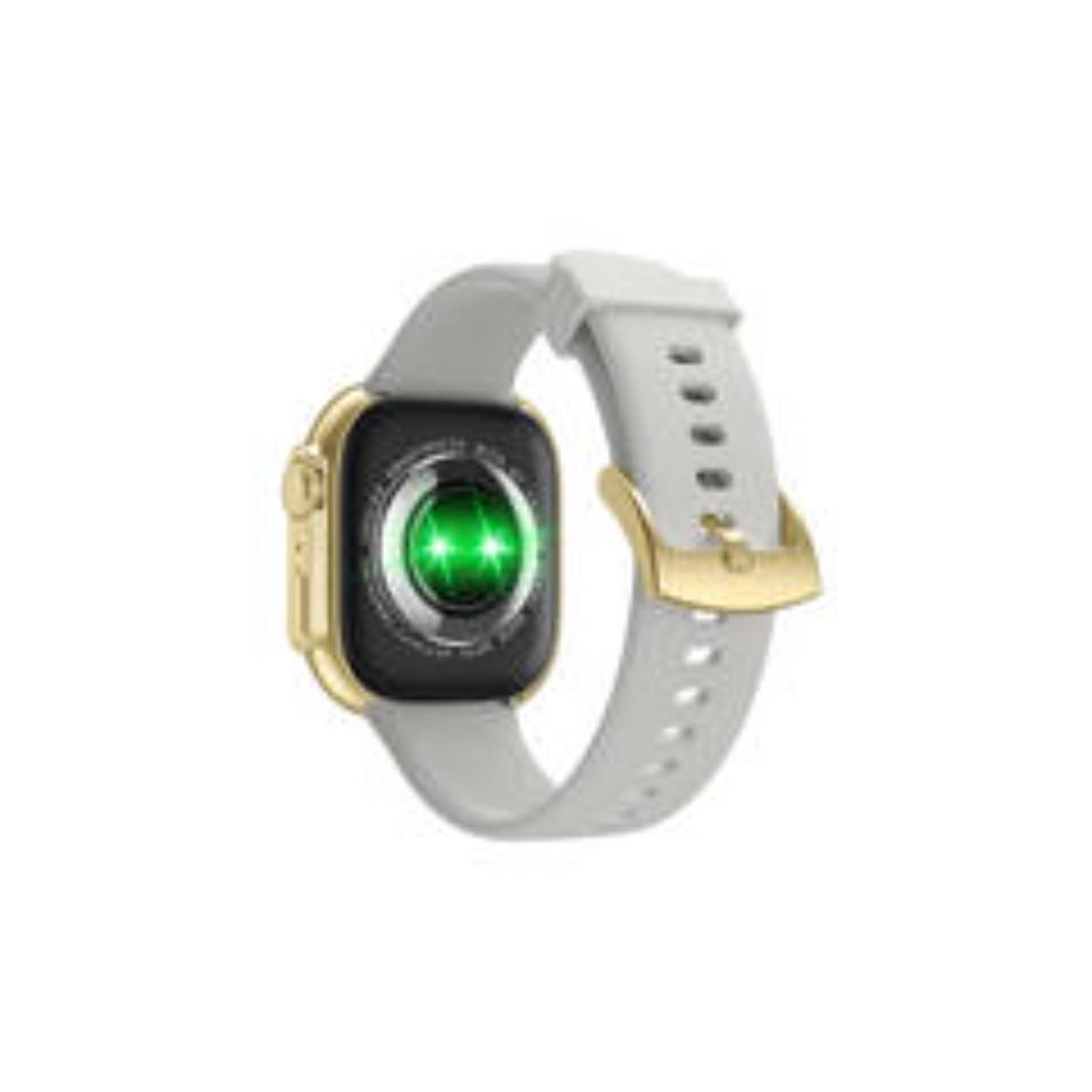 Dit Smarty Smartwatch horloge met nr: SW071F is een stap in de toekomst. Door zijn Amoled scherm is het beeld vele malen scherper en intenser. De goudkleurige kast is gemaakt van zinklegering/alluminium met een gehard glas. Aan de kast zit een witte siliconen band met een gespsluiting. Het rechthoekige horloge heeft een afmeting van 44,5x39,3mm en is spatwaterdicht. Deze smartwatch is sportief, stijlvol, maar zeker gebruiksvriendelijk. Om door apps, berichten en tekst te bladeren hoeft je alleen maar op het glas te tikken of de knop te gebruiken.