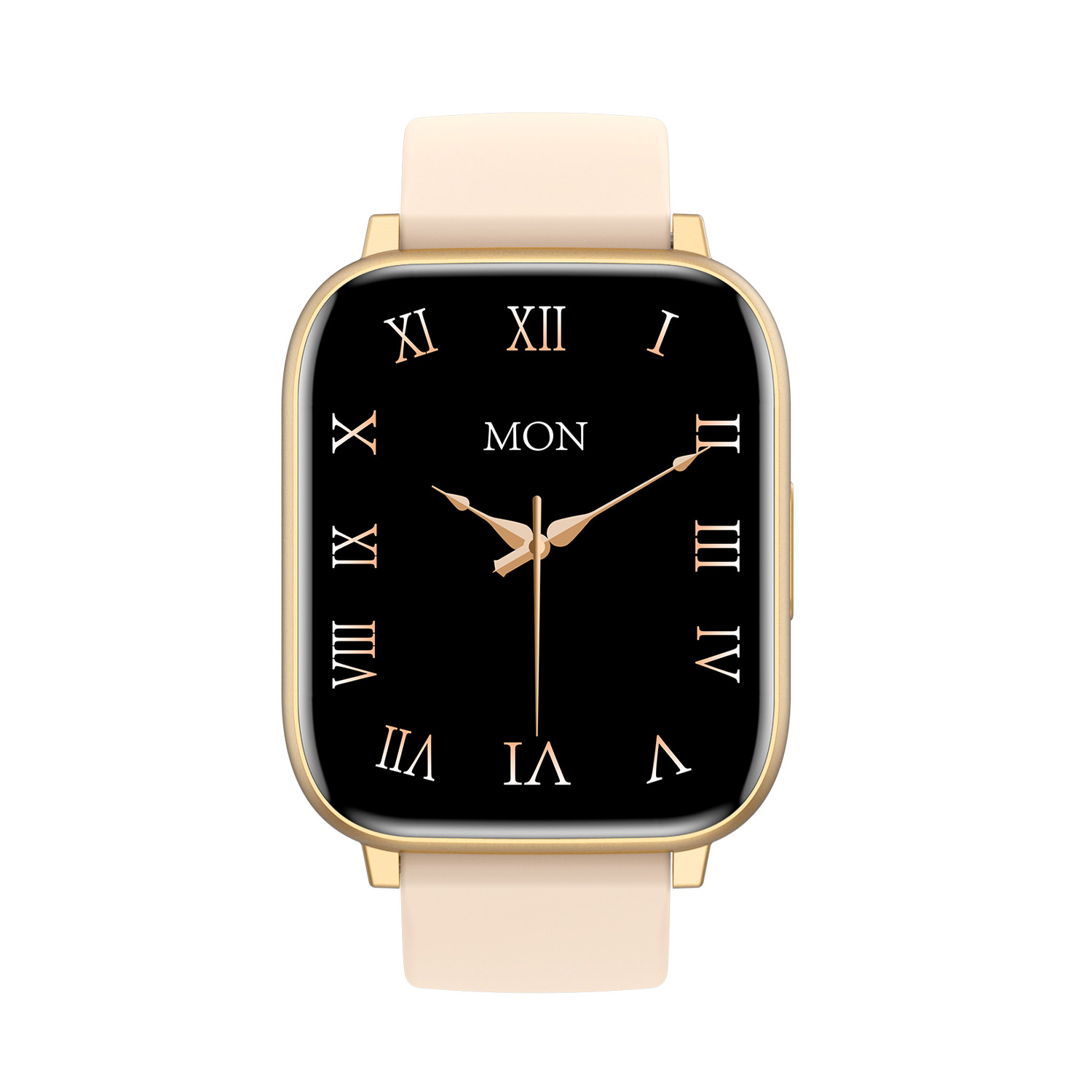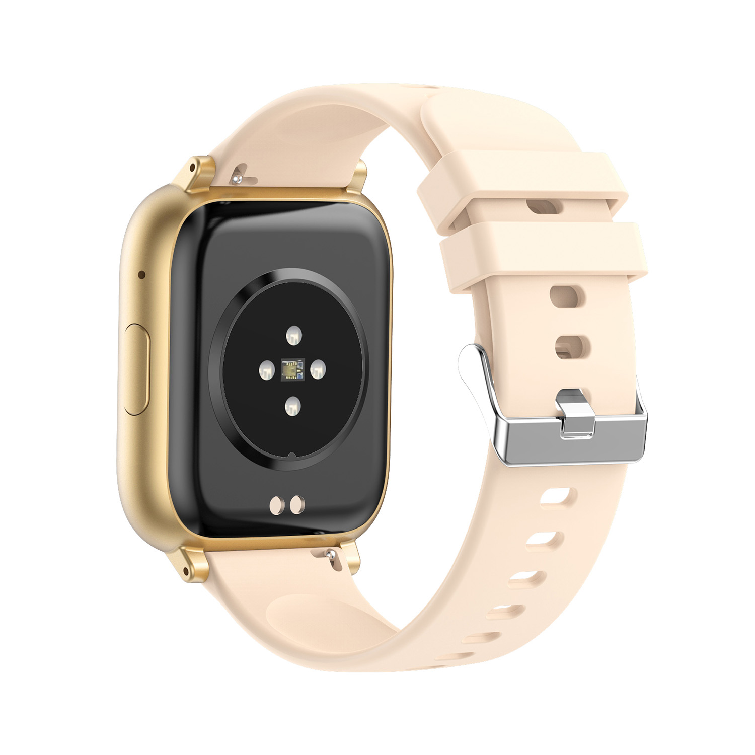 Dit Smarty Smartwatch horloge is een stap in de toekomst. Door zijn Amoled scherm is het beeld vele malen scherper en intenser. De goudkleurige kast is gemaakt van aluminium met een gehard glas. Aan de kast zit een beige siliconen band met een gespsluiting. Het rechthoekige horloge heeft een afmeting van 42x36x10mm en is spatwaterdicht. Deze smartwatch is sportief, stijlvol, maar zeker gebruiksvriendelijk. Om door apps, berichten en tekst te bladeren hoeft je alleen maar op het glas te tikken of de knop te gebruiken. Tevens heeft het een Find my watch functie.
