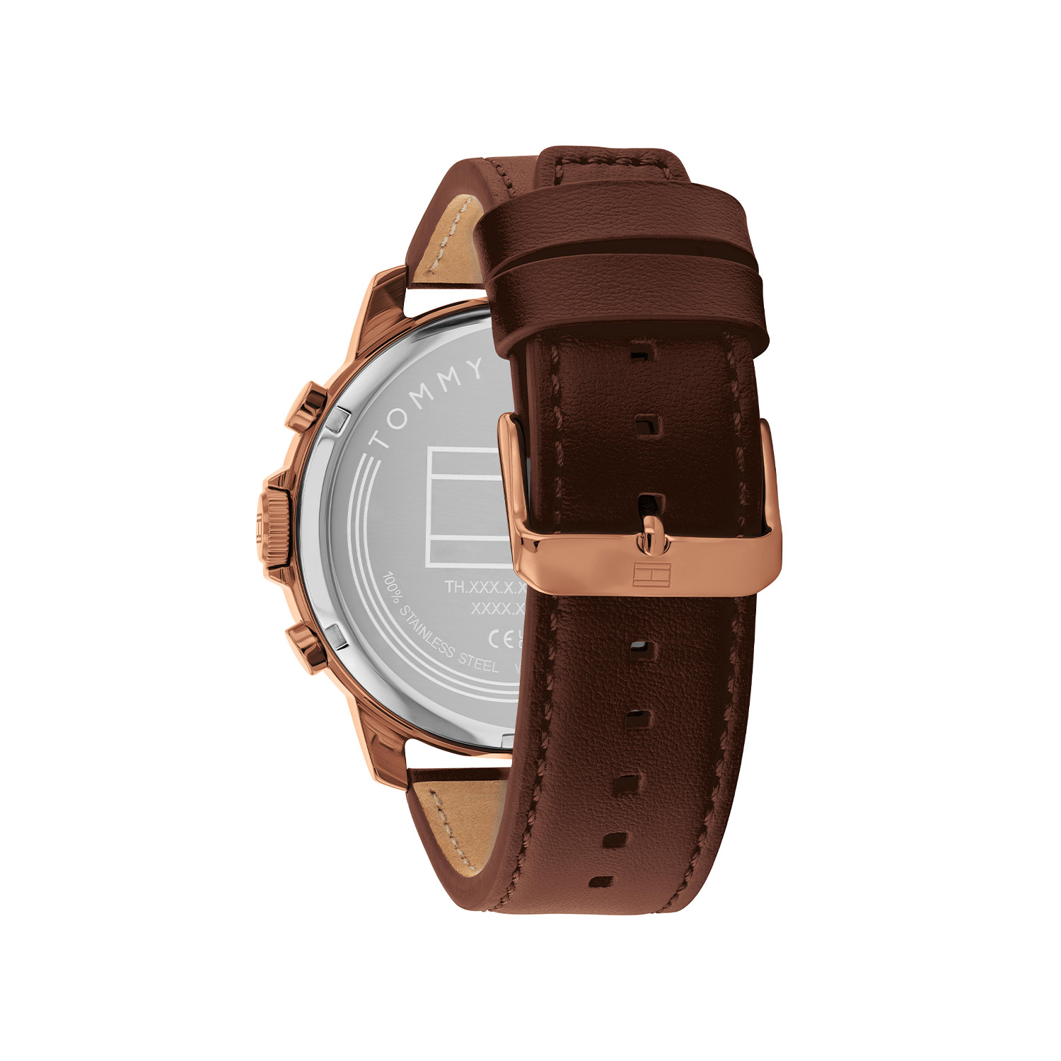 Dit specifieke horloge van Tommy Hilfiger uit de Luca serie met artikelnr: TH1792207 is een keurig herenhorloge die niet in je collectie mag ontbreken. Het stalen herenhorloge heeft een ronde bronskleurige kast met een aparte bewerkte groene wijzerplaat met een dag, datum en 24-uursaanduiding. Aan de kast zit een bruine lerenband met een gespsluiting. Het horloge heeft een mineraalglas, een doorsnee van 50mm en is 5ATM.