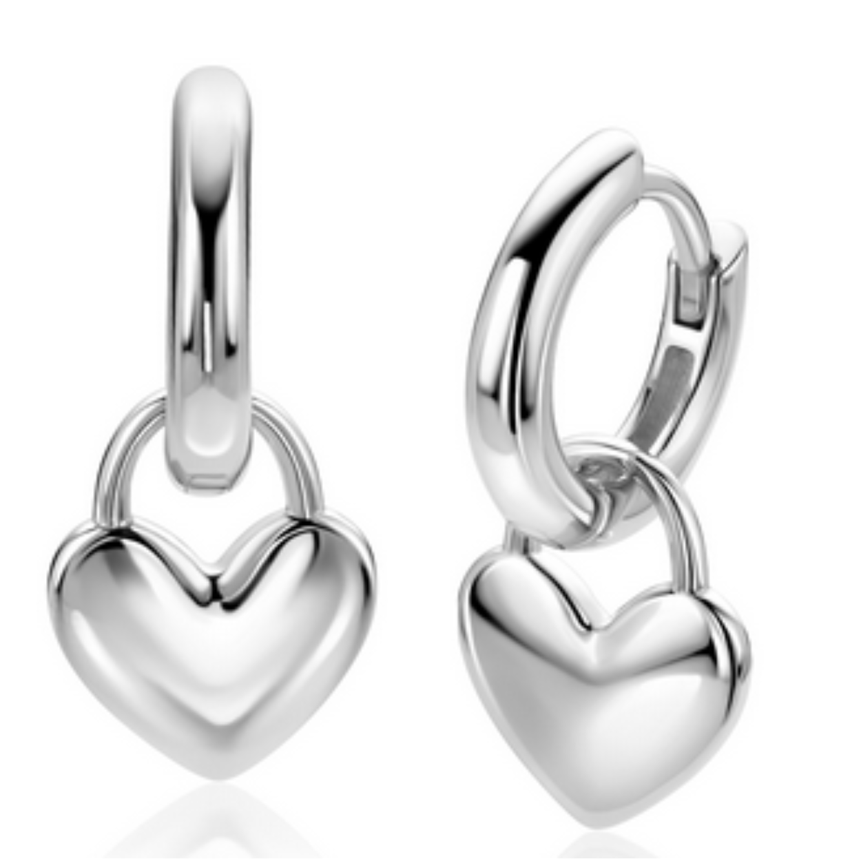 9mm ZINZI zilveren oorbedels glanzend hart ZICH2673