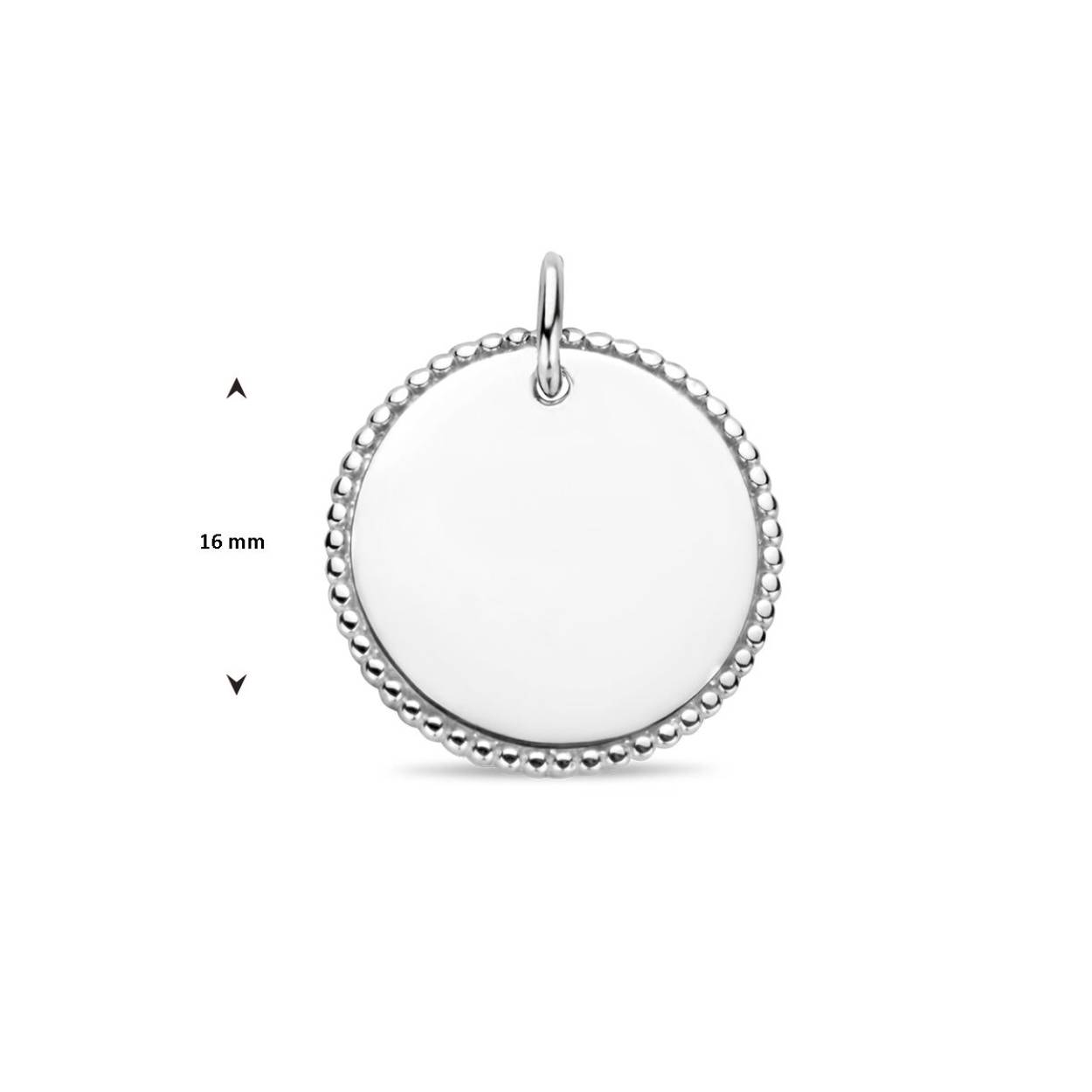 Gerhodineerd 925 zilveren graveerhanger. De dikte van de graveerplaat is ongeveer 0.4mm.