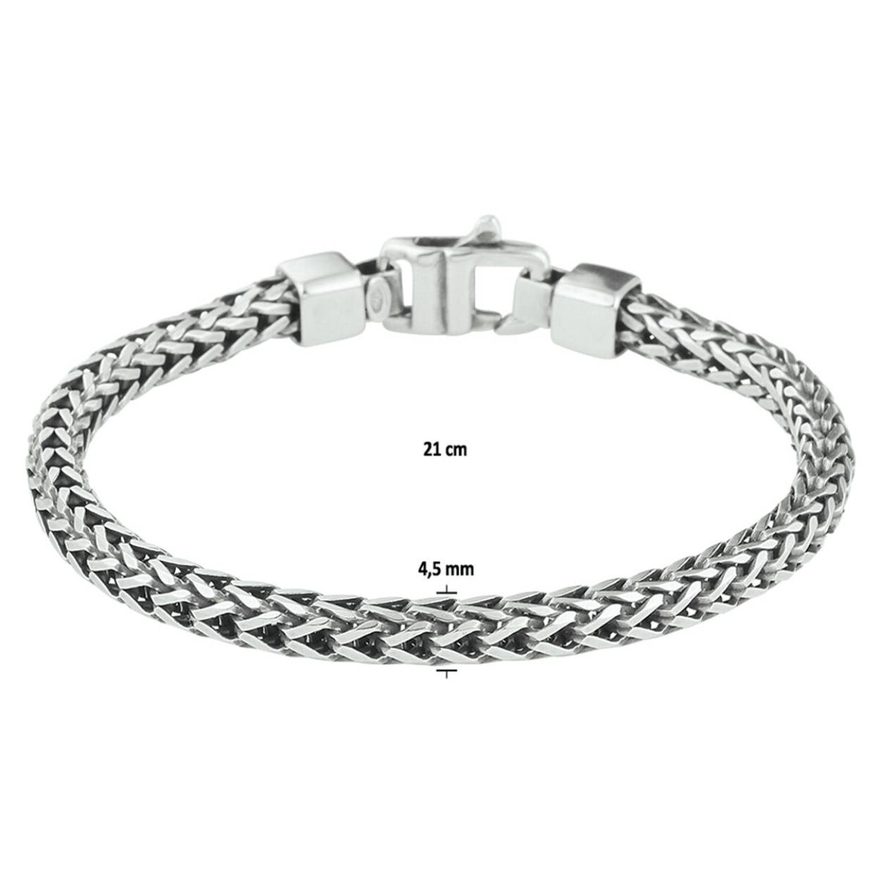 Stijlvolle geoxideerd zilveren armband met een vossestaart schakel. De armband heeft een draaglengte van 19cm en een schakelbreedte van 4.5mm. Uitgevoerd met een stevige karabijn sluiting.