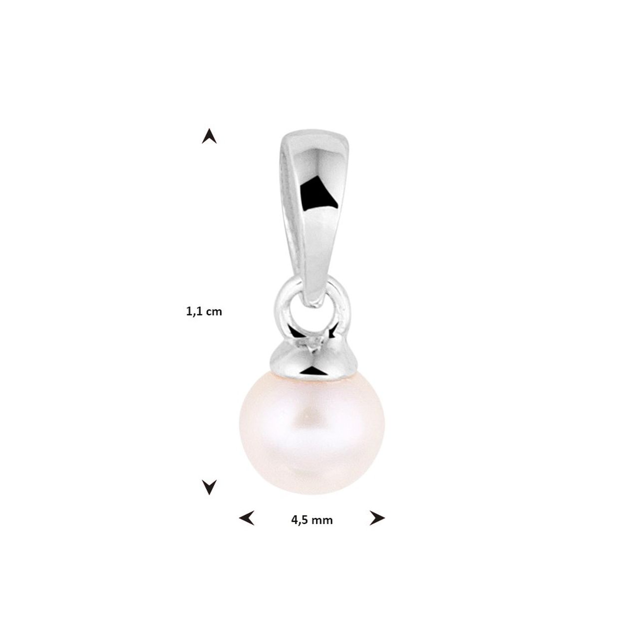 Gerhodineerd 925 zilveren hanger uitgevoerd met een roze parel. De hanger heeft een totale hoogte van 11mm. De parel heeft een diameter van 4.5mm.