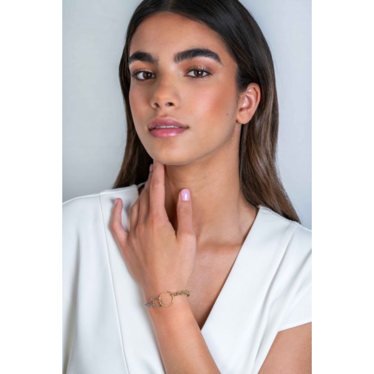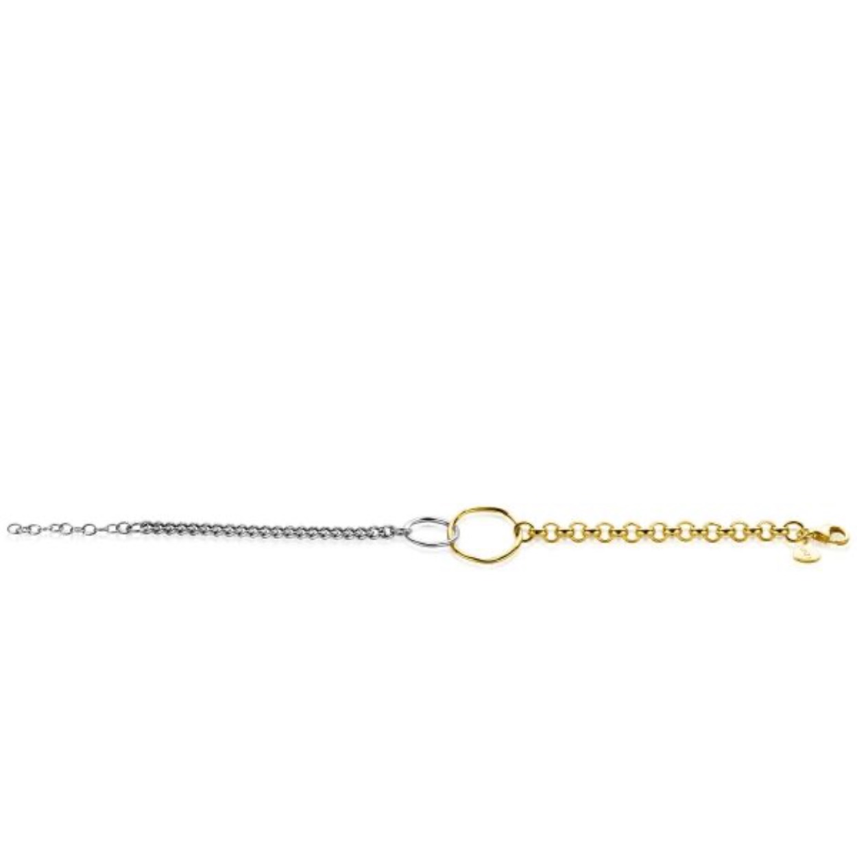 Zinzi zilveren armband met trendy gourmet en gold plated jasseron schakels, verbonden door ronde vormen in elkaar 17-20cm ZIA2333