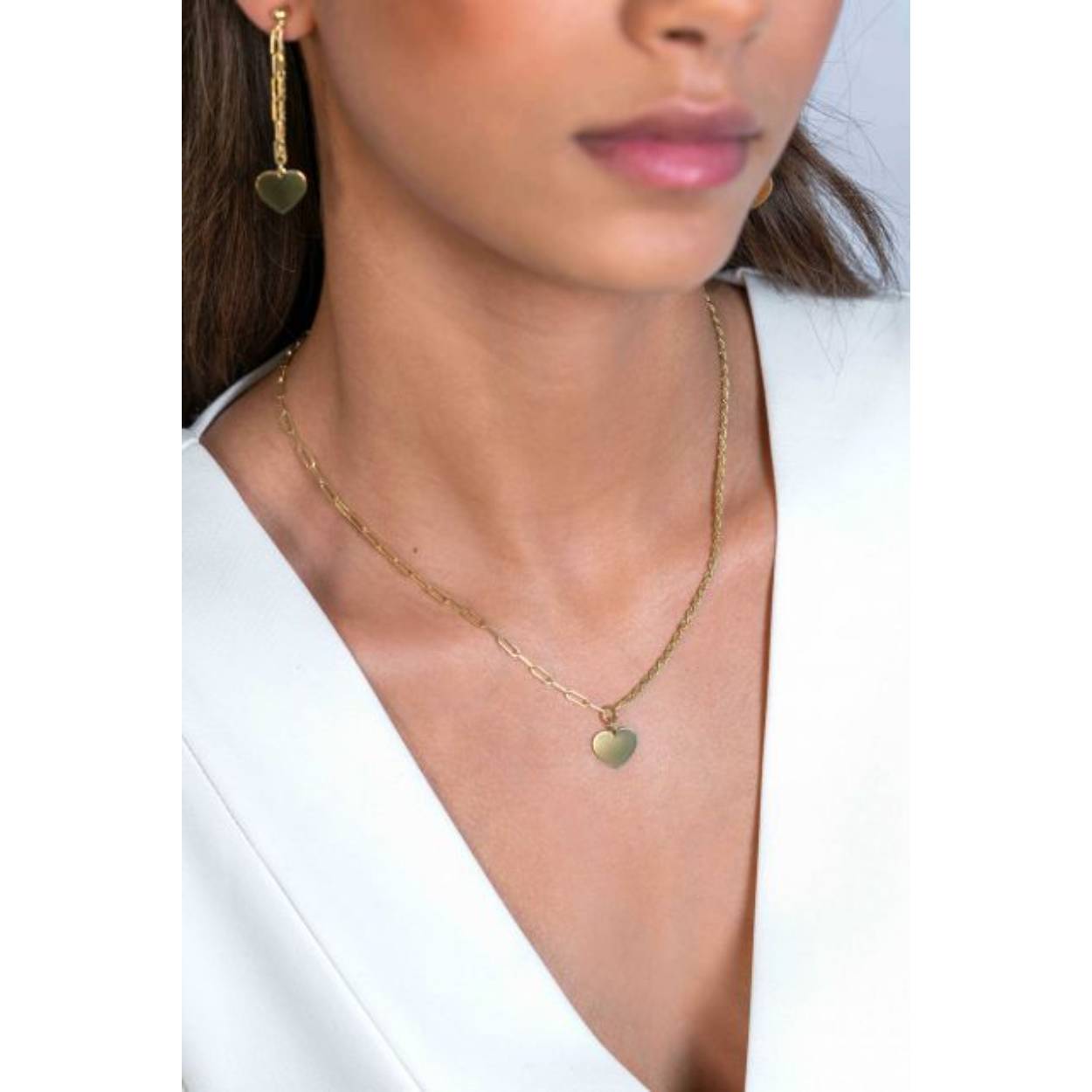 ZINZI gold plated zilveren schakel ketting met twee trendy schakels en glad hart 40-45cm ZIC2381G