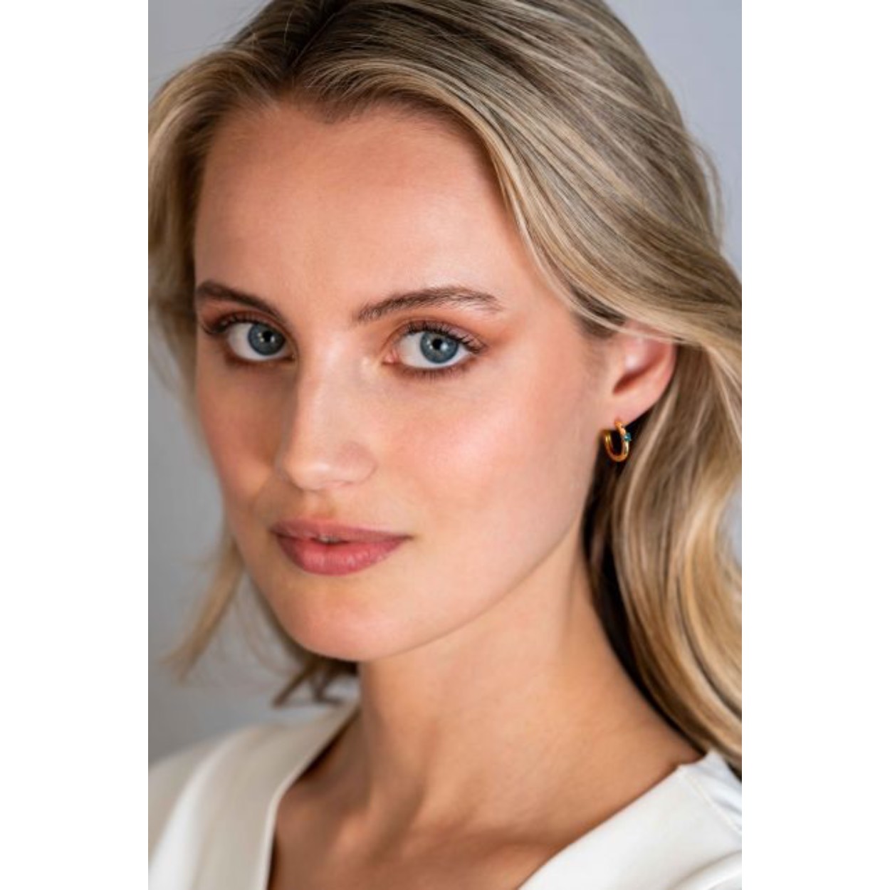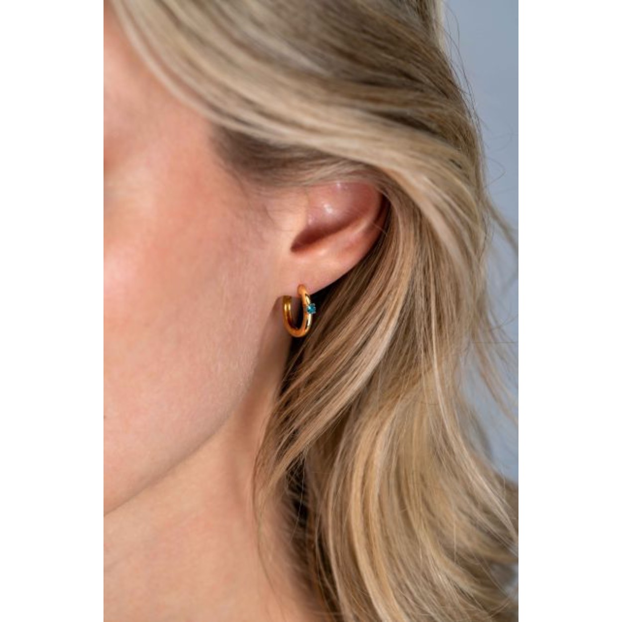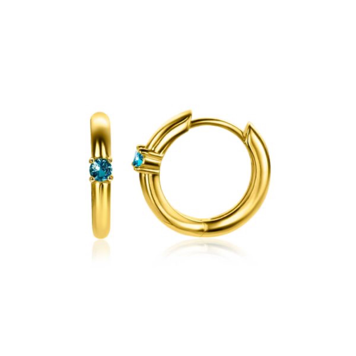 MAART oorringen 13mm gold plated met geboortesteen blauw aquamarijn zirconia